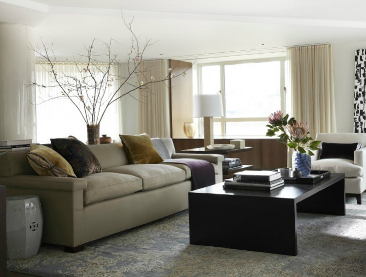 A modern coffee table, usually in a dark tone and straight lines, is a detail that bring comfort and coolness to your living room.